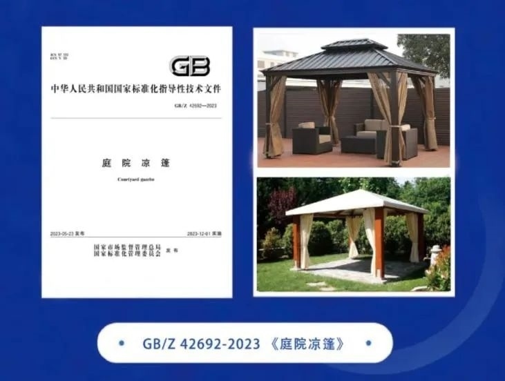 《庭院涼篷》國家標(biāo)準(zhǔn)化指導(dǎo)性技術(shù)文件自2023年12月1日起實施,該文件的制定和出臺將填補(bǔ)該類產(chǎn)品缺乏標(biāo)準(zhǔn)規(guī)范的空白,有利于庭院涼篷產(chǎn)品質(zhì)量的提升以及行業(yè)的發(fā)展,為企業(yè)出口提供保障。文件首次對庭院涼篷從產(chǎn)品分類、原材料、外觀、產(chǎn)品完整性、尺寸、性能要求和安全要求等方面進(jìn)行詳細(xì)規(guī)范。