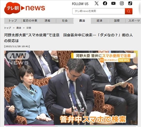 ·據(jù)日媒報(bào)道,27日,日本參議院預(yù)算委員會(huì)公開(kāi)答辯中,數(shù)字大臣河野太郎在回答問(wèn)題時(shí),拿出手機(jī)試圖查詢資料,被委員長(zhǎng)叫停。