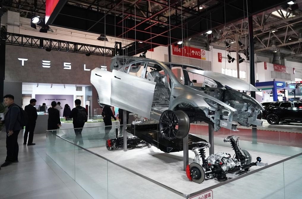 11月30日在鏈博會(huì)智能汽車(chē)鏈展區(qū)拍攝的特斯拉展位。新華社記者 任超 攝