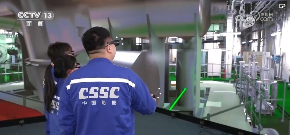 總臺(tái)央視記者 吳天白:如今造船靠的就是這艘“數(shù)字樣船”,戴上3D眼鏡便置身于一艘液化氣船的機(jī)艙,不僅能將船艙內(nèi)的情況盡收眼底。數(shù)字化工具就像庖丁解牛,把船舶這個(gè)巨系統(tǒng)拆解得清清楚楚,整合得天衣無縫,從而提升設(shè)計(jì)、制造的效率。