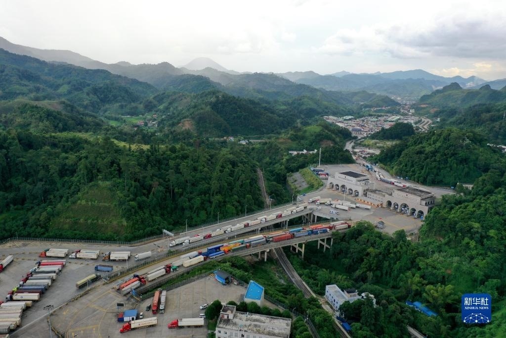 這是繁忙的廣西憑祥友誼關(guān)口岸(2023年9月9日攝,無人機(jī)照片)。新華社記者 曹祎銘 攝