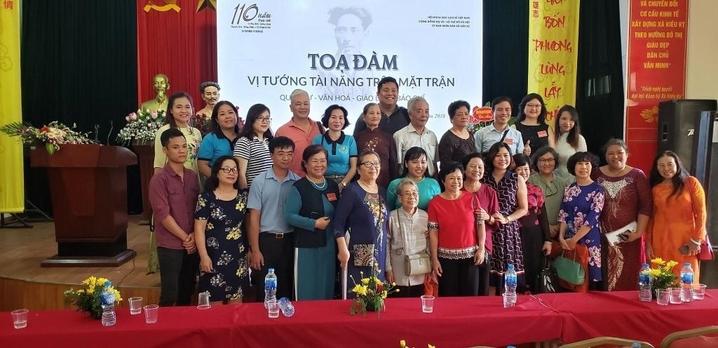 2018年9月30日,中越“兩國將軍”洪水誕辰110周年紀(jì)念活動在洪水故鄉(xiāng)河內(nèi)市嘉林縣驕騎鄉(xiāng)舉行。此為洪水將軍后代合影留念。(受訪者供圖)