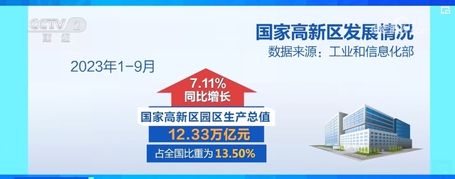 2023年前三季度,國家高新區(qū)園區(qū)生產(chǎn)總值為12.33萬億元,同比增長7.11%,占全國比重為13.50%,集聚了全國1/3的高新技術(shù)企業(yè)和2/3的科創(chuàng)板上市企業(yè)。