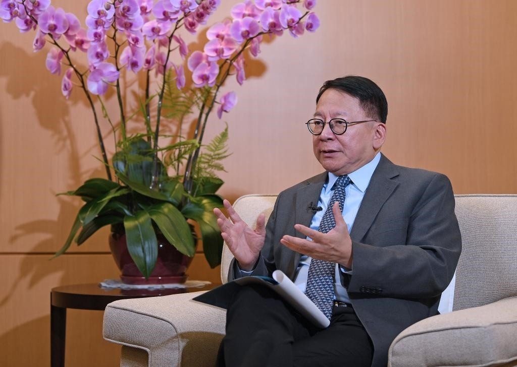 11月27日,香港特區(qū)政府政務(wù)司司長陳國基接受采訪。新華社記者 陳鐸 攝