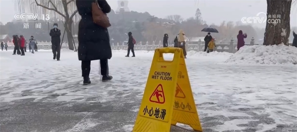 北海公園信息傳媒科副科長(zhǎng) 張磊:主要是在門區(qū)、洗手間以及重點(diǎn)的景區(qū),同時(shí)我們也設(shè)置了“小心地滑”的這種提示牌130余處,此次降雪時(shí)間由于比較長(zhǎng),公園也采用了“機(jī)械+人工掃雪”的這種方式,爭(zhēng)取做到了隨掃隨清,保證主路的暢通。
