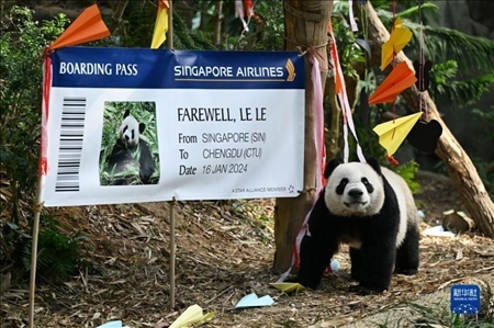 12月13日,新加坡河川生態(tài)園為首只在新加坡出生的大熊貓“叻叻”舉行歡送會(huì)?!斑愤贰睂⒂?024年1月16日啟程返回中國。