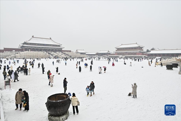 12月13日,北京再次迎來大雪天氣,不少游客前往故宮游玩賞雪。
