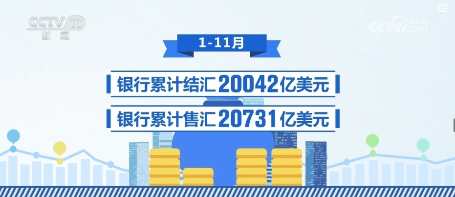 國家外匯管理局最新數(shù)據(jù)顯示,11月,銀行結匯1735億美元,售匯1981億美元。1—11月,銀行累計結匯20042億美元,累計售匯20731億美元。
