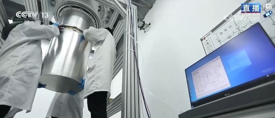 完成復(fù)雜的運(yùn)算僅靠主板是不夠的。量子芯片相當(dāng)于傳統(tǒng)計(jì)算機(jī)的CPU,也就是“大腦”,但是想讓芯片正常工作,所需要的環(huán)境是非??量痰?。在現(xiàn)場(chǎng),工作人員正在調(diào)試的就是給這塊芯片提供理想工作環(huán)境的低溫低噪運(yùn)行裝置,芯片就是在這個(gè)白色圓桶狀主體內(nèi)工作,圓筒里會(huì)形成接近“絕對(duì)零度”,也就是約在零下273.15℃的環(huán)境,并且還要與外界屏蔽隔離。除了低溫、低噪之外,這套系統(tǒng)上還安裝了很多減震設(shè)備,也是最大程度避免外界環(huán)境影響到芯片的運(yùn)行。