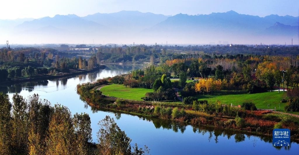 這是陜西西咸新區(qū)灃河兩岸景色(2023年10月15日攝,無人機照片)。近年來,陜西西咸新區(qū)實施灃河綜合治理工程,治污、凈水、增綠等多措并舉,利用河流自然形態(tài)打造生態(tài)節(jié)點,形成了“洪暢、堤固、水清、岸綠、景美、管理長效”的河湖景象。新華社記者 劉瀟 攝