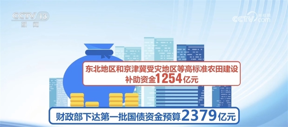 據(jù)介紹,根據(jù)工作機(jī)制確定的第一批2900多個項目,財政部已經(jīng)下達(dá)第一批國債資金預(yù)算2379億元,其中,災(zāi)后恢復(fù)重建和提升防災(zāi)減災(zāi)能力補(bǔ)助資金1075億元、東北地區(qū)和京津冀受災(zāi)地區(qū)等高標(biāo)準(zhǔn)農(nóng)田建設(shè)補(bǔ)助資金1254億元、重點(diǎn)自然災(zāi)害綜合防治體系建設(shè)工程補(bǔ)助資金(氣象基礎(chǔ)設(shè)施項目建設(shè))50億元。