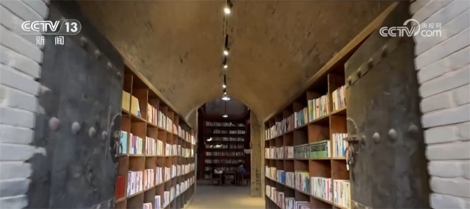您現(xiàn)在看到的是河南孟州市莫溝村的老苗窯洞書館。2016年,村里將一處廢棄的窯洞改造建成了書館。古樸與現(xiàn)代交織的書館占地4000多平方米,藏書5萬多冊。自2016年建成以來,書館全年開放,每到節(jié)假日就幾乎坐滿了人。如今,書館已經(jīng)成了村民的精神家園。