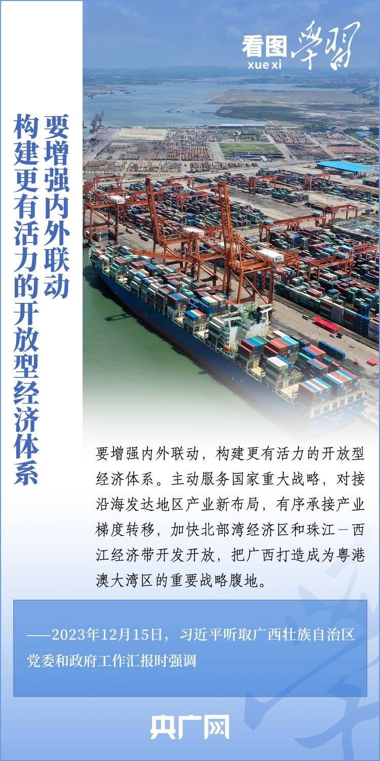 12月14日至15日,剛剛結(jié)束對越南進(jìn)行國事訪問的習(xí)近平總書記在廣西考察并聽取廣西壯族自治區(qū)黨委和政府工作匯報??倳泴V西發(fā)展提出殷切希望,強(qiáng)調(diào)廣西要發(fā)揮自身優(yōu)勢,以鑄牢中華民族共同體意識為主線,解放思想、創(chuàng)新求變,向海圖強(qiáng)、開放發(fā)展,努力在推動邊疆民族地區(qū)高質(zhì)量發(fā)展上展現(xiàn)更大作為,奮力譜寫中國式現(xiàn)代化廣西篇章。一起來學(xué)習(xí)!