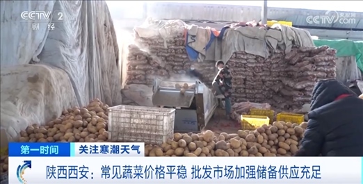 在西安一家大型農(nóng)副產(chǎn)品批發(fā)市場,為了應(yīng)對寒潮天氣帶來的影響,常年做蔬菜批發(fā)生意的戴建軍早在土豆產(chǎn)地建起庫房,大量收購?fù)炼梗黾舆\輸車輛,確保土豆能及時運到西安。