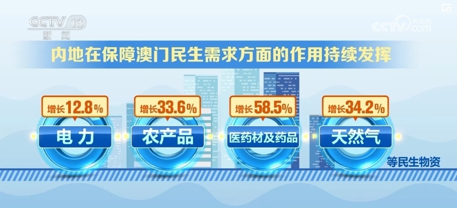內(nèi)地對(duì)澳門(mén)出口商品結(jié)構(gòu)更加多元。2023年以來(lái),內(nèi)地經(jīng)拱北海關(guān)對(duì)澳門(mén)地區(qū)出口機(jī)電產(chǎn)品74億元,占同期總值的37.4%,而1999年的比重不足10%。此外,電力、農(nóng)產(chǎn)品、醫(yī)藥材及藥品、天然氣等民生物資分別增長(zhǎng)12.8%、33.6%、58.5%、34.2%,內(nèi)地在保障澳門(mén)民生需求方面的作用持續(xù)發(fā)揮。