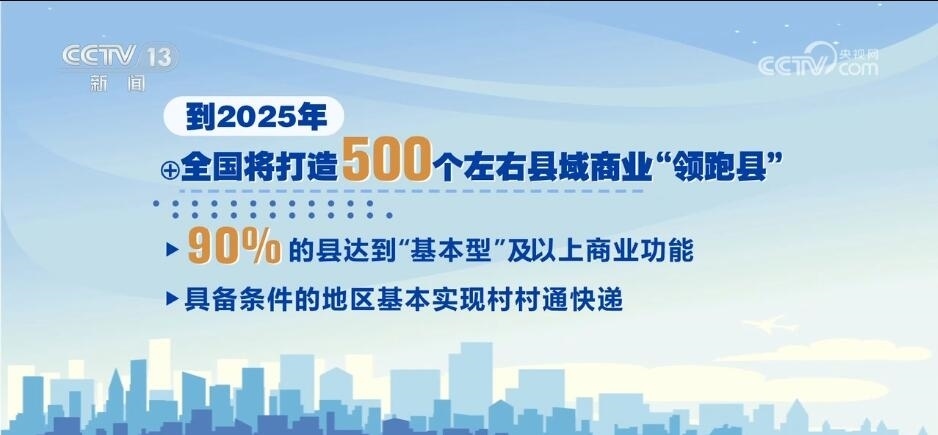 按照規(guī)劃,到2025年,全國將打造500個左右縣域商業(yè)“領跑縣”,90%的縣達到“基本型”及以上商業(yè)功能,具備條件的地區(qū)基本實現(xiàn)村村通快遞。
