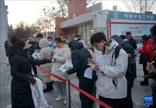 12月23日,在黑龍江省哈爾濱市,考生在哈爾濱理工大學(xué)考點(diǎn)排隊(duì)進(jìn)入考場(chǎng)。