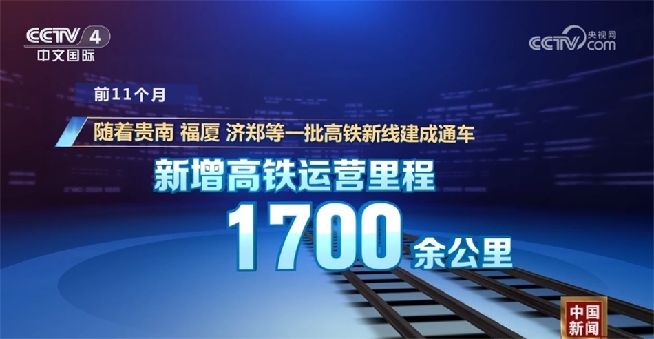 今年以來(lái),國(guó)鐵集團(tuán)以聯(lián)網(wǎng)、補(bǔ)網(wǎng)、強(qiáng)鏈為重點(diǎn),高質(zhì)量推進(jìn)鐵路規(guī)劃建設(shè)。前11個(gè)月,全國(guó)鐵路完成固定資產(chǎn)投資同比增長(zhǎng)7.4%。隨著貴南、福廈、濟(jì)鄭等一批高鐵新線(xiàn)建成通車(chē),新增高鐵運(yùn)營(yíng)里程1700余公里,“八縱八橫”高鐵網(wǎng)越織越密。