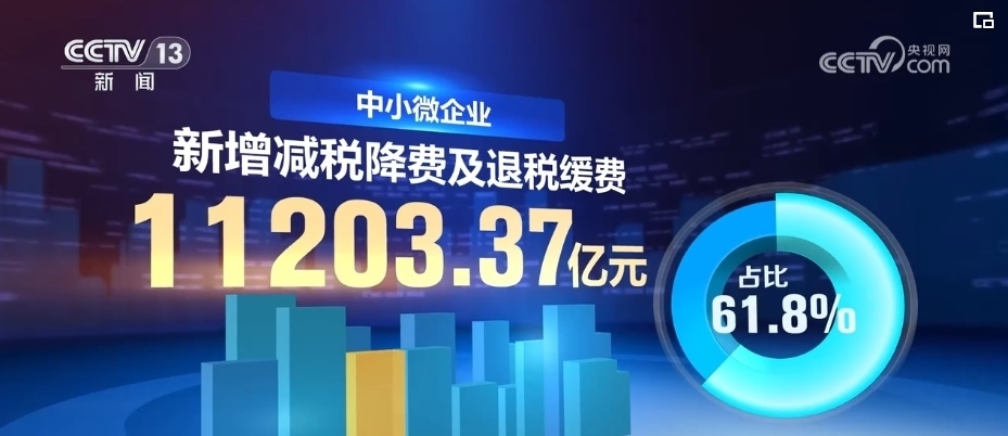 分企業(yè)規(guī)模看,中小微企業(yè)受益最明顯,新增減稅降費及退稅緩費11203.37億元,占比61.8%。