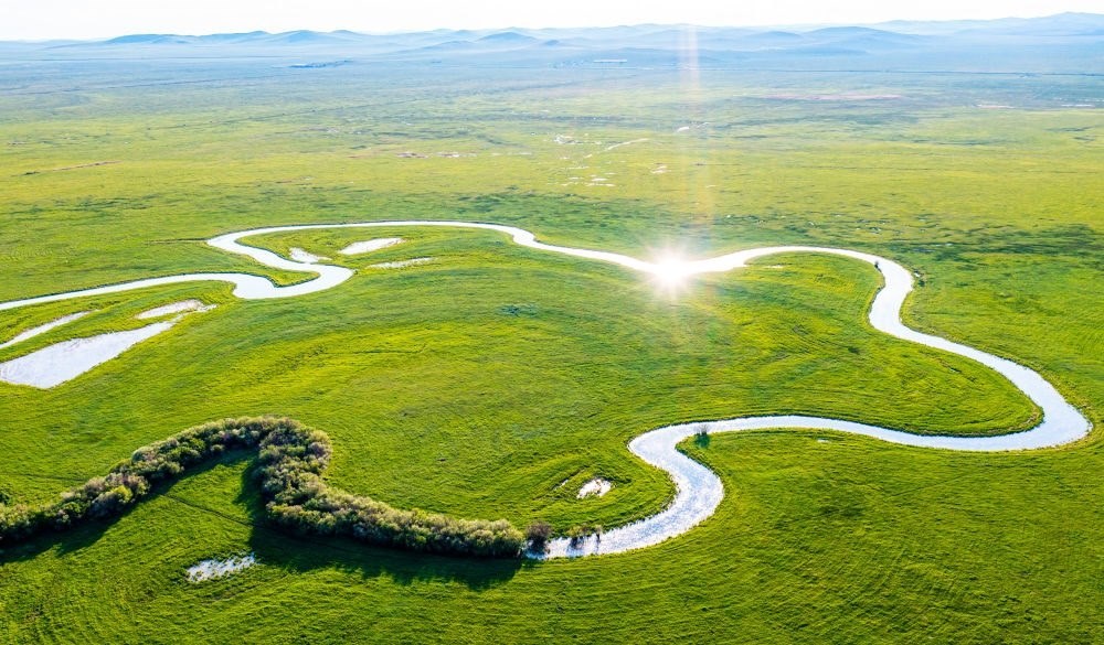 這是6月12日在內(nèi)蒙古自治區(qū)錫林郭勒盟東北部拍攝的烏拉蓋草原(無人機照片)。