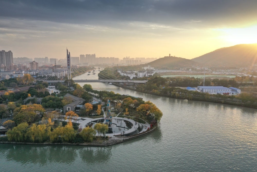 江蘇無錫運河主航道與運河公園景色(無人機照片,12月9日攝)。