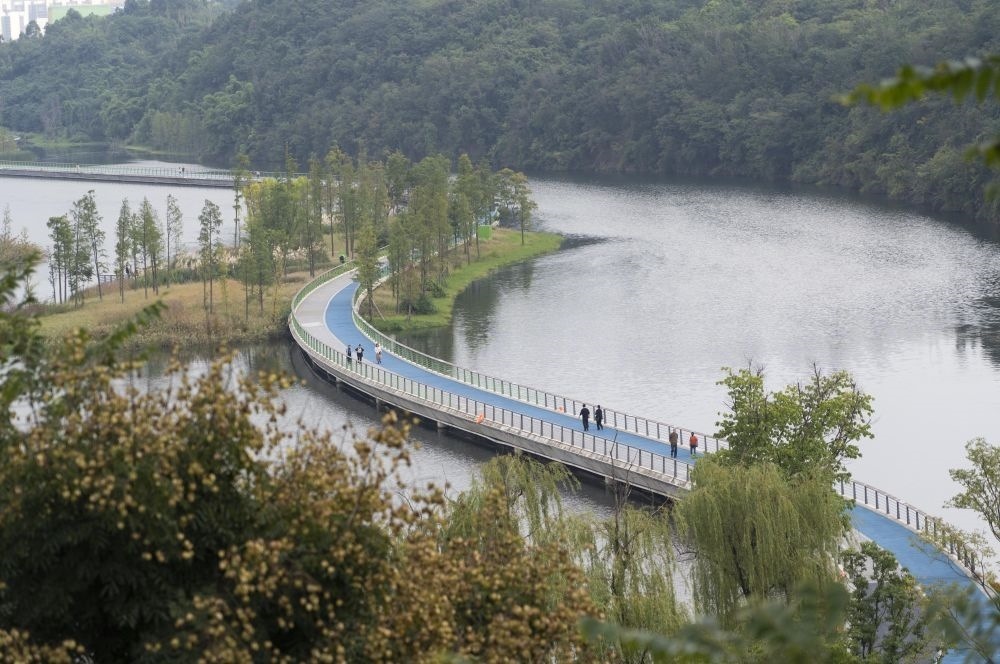 這是四川天府新區(qū)興隆湖上的健身步道(10月16日攝)。
