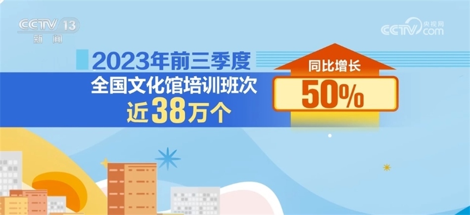 據(jù)統(tǒng)計(jì),2023年前三季度公共圖書館總流通人次同比增長55.2%;2023年前三季度,全國文化館培訓(xùn)班次近38萬個,同比增長50%;文化館(群藝館)服務(wù)人次同比增長142.7%。