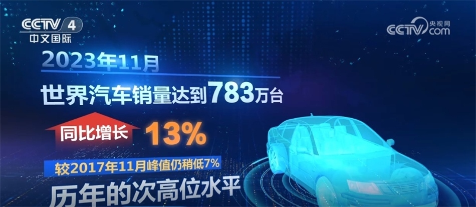 記者同時(shí)從全國(guó)乘用車(chē)市場(chǎng)信息聯(lián)席會(huì)了解到,2023年11月,世界汽車(chē)銷(xiāo)量達(dá)到783萬(wàn)臺(tái),同比增長(zhǎng)13%,較2017年11月峰值仍稍低7%,處歷年的次高位水平。其中,中國(guó)車(chē)企的銷(xiāo)量占世界份額38%,今年1—11月的累計(jì)份額達(dá)到33%。