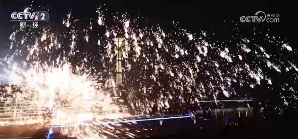新年將至,大南門歷史文化街區(qū)里豐富多樣的民俗活動吸引了大批的游人。其中,特色表演滾花龍表演講究“圓”而“猛”,龍身舞動起來后更像是滾動的花環(huán),預(yù)示著新的一年里希望大家活力滿滿、努力奮進(jìn)的美好祝愿。1600℃的鐵汁被高高拋起,被木板奮力打散,瞬間,夜空中萬點(diǎn)星辰散開,美不勝收。