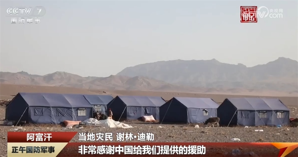 2023年10月,阿富汗赫拉特省連續(xù)發(fā)生多次6級(jí)以上強(qiáng)震,中國(guó)空軍兩架運(yùn)-20運(yùn)輸機(jī)搭載著中國(guó)政府和中國(guó)紅十字會(huì)提供的近50噸人道主義救援物資飛往阿富汗。在受地震影響最嚴(yán)重的赫拉特省津達(dá)詹區(qū),一頂頂中國(guó)援助的藍(lán)色帳篷挺立在廢墟旁的空地上。