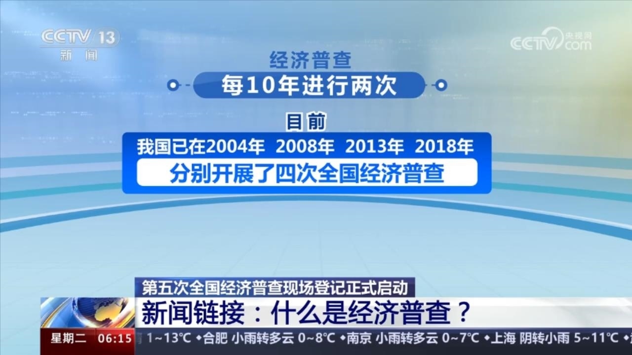經(jīng)濟(jì)普查是一項重大的國情國力調(diào)查,與人口普查、農(nóng)業(yè)普查組成三大周期性全國普查項目。經(jīng)濟(jì)普查每10年進(jìn)行兩次,目前我國已在2004年、2008年、2013年和2018年分別開展了四次全國經(jīng)濟(jì)普查。