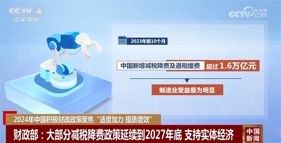 央視網(wǎng)消息:2023年中國實(shí)施的積極財(cái)政政策有力有效,推動(dòng)經(jīng)濟(jì)實(shí)現(xiàn)了質(zhì)的有效提升和量的合理增長。記者日前在專訪多位中國財(cái)政部相關(guān)負(fù)責(zé)人時(shí)了解到,2024年中國將堅(jiān)持穩(wěn)中求進(jìn)工作總基調(diào),繼續(xù)實(shí)施積極的財(cái)政政策,圍繞“適度加力、提質(zhì)增效”做文章,并積極穩(wěn)妥推進(jìn)稅制改革?!吨袊侣劇吩┨貏e節(jié)目《開年經(jīng)濟(jì)觀察》,今天(1月3日)聚焦“適度加力、提質(zhì)增效”的中國積極財(cái)政政策。