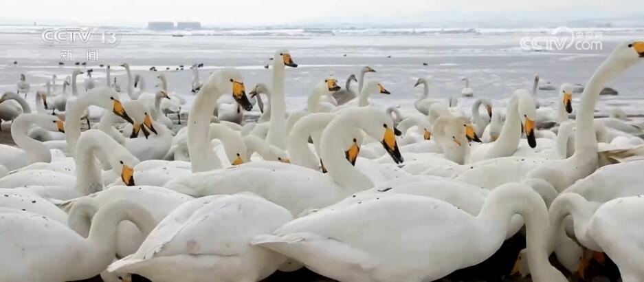 山東榮成:大天鵝雪中嬉戲 警民聯(lián)手守護生態(tài)美景