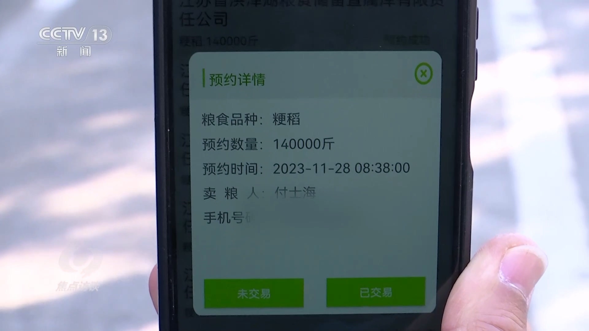 在江蘇省糧食部門研發(fā)的這個“滿意蘇糧”應(yīng)用程序里,不僅能夠?qū)崟r查詢收購價格、糧庫倉容狀態(tài),還能預(yù)約賣糧。通過手機(jī)看到這幾天的價格比較合適,付士海也準(zhǔn)備將自己的糧食出手了。