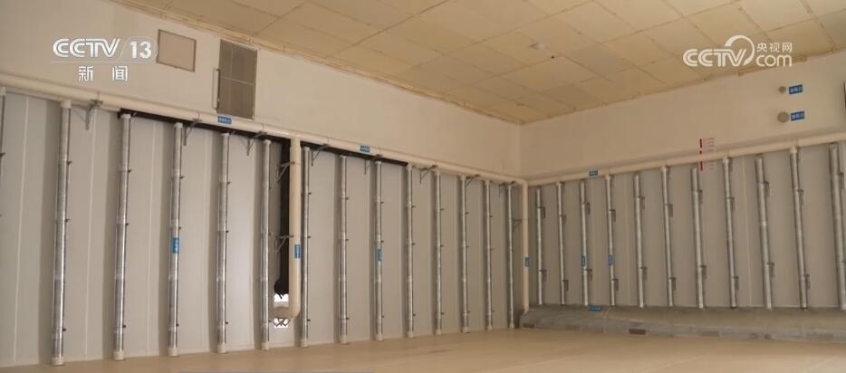 當(dāng)工作人員打開(kāi)這座暫時(shí)空著的倉(cāng)庫(kù)時(shí),墻壁上的一排排管道十分搶眼。天氣熱的時(shí)候,這四面墻的氣道里都會(huì)充入冷空氣,再加上頂部的風(fēng)道,這“五面立體動(dòng)態(tài)控溫技術(shù)”就相當(dāng)于給糧倉(cāng)內(nèi)外加了一道隔離帶,低溫保鮮。
