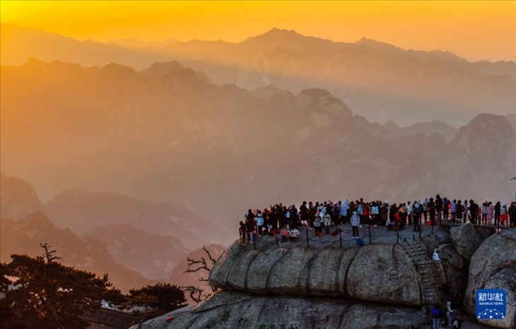 2023年12月31日,游客在位于陜西省渭南市的華山西峰賞景(無人機(jī)照片)。元旦假期期間,人們用各種方式樂享時光,迎接新年,歡度假期。新華社發(fā)(汪艷 攝)
