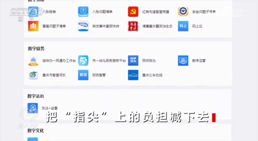 工作重心向基層服務(wù)轉(zhuǎn)變,才能切實(shí)看到為基層減負(fù)的實(shí)效。2021年,重慶市一體化、智能化、數(shù)字化政務(wù)工作平臺(tái)“渝快政”正式發(fā)布?!坝蹇煺痹谌蟹秶鷥?nèi)實(shí)現(xiàn)了上下層級(jí)、橫向跨部門之間的協(xié)同,一個(gè)“渝快政”App就可以支持過(guò)去40多項(xiàng)高頻次的政務(wù)辦公應(yīng)用,過(guò)去各部門App的相應(yīng)功能、各種工作群都整合在了“渝快政”一個(gè)App里面。一表通、“141”基層智治平臺(tái)也已經(jīng)接入了“渝快政”,正在向全市推廣?,F(xiàn)在,文勇手機(jī)里的53個(gè)工作群已經(jīng)解散,郝歡手機(jī)里十幾個(gè)部門App也已經(jīng)被整合到“渝快政”。?