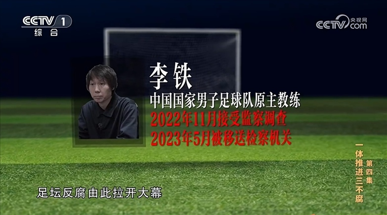 【解說詞】李鐵是本次專案第一個接受監(jiān)察調(diào)查并被留置的人員,事實(shí)證明,這個切入點(diǎn)的選擇是非常精準(zhǔn)的。他既在多家俱樂部擔(dān)任過教練,又曾擔(dān)任中國國家男子足球隊(duì)主教練,在足球領(lǐng)域關(guān)系盤根錯節(jié),以他為突破口縱深挖掘、橫向拓展,牽出了從聯(lián)賽到國家隊(duì)、從俱樂部到足協(xié)的若干涉嫌違紀(jì)違法犯罪人員,以及種種黑幕和制度漏洞。