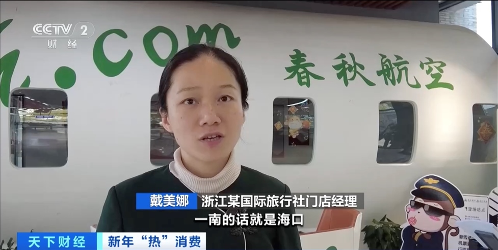 浙江某國(guó)際旅行社門店經(jīng)理 戴美娜:國(guó)內(nèi),南方飛海口的線路比較旺;北方目前最火的是哈爾濱,都想去那邊打個(gè)卡。