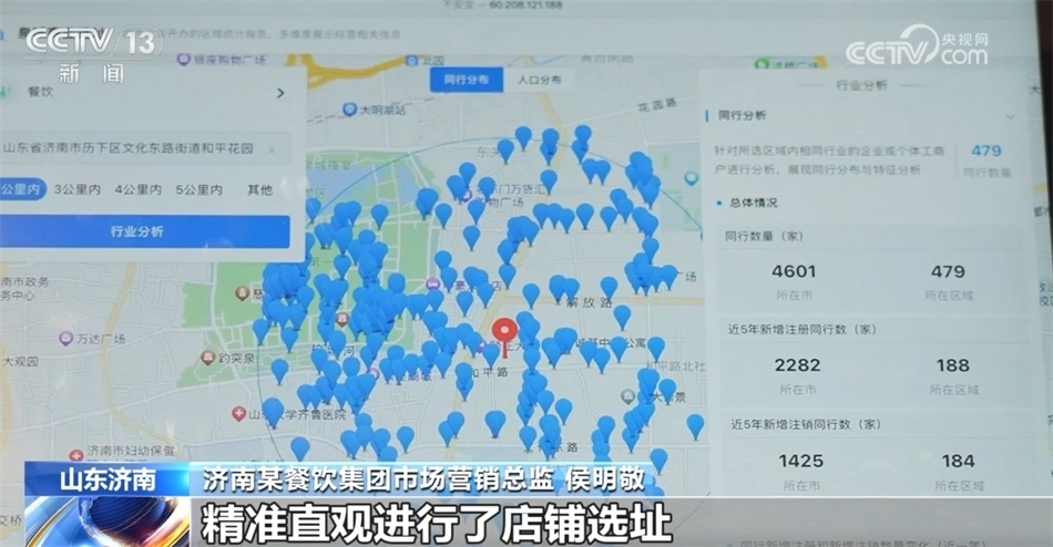 濟(jì)南某餐飲集團(tuán)市場營銷總監(jiān) 侯明敬:我們通過“濟(jì)南公共數(shù)據(jù)開放網(wǎng)”上的“泉城商業(yè)選址”應(yīng)用,精準(zhǔn)直觀進(jìn)行了店鋪選址。比如說兩公里內(nèi)餐飲同行有479家,人口總量超過了24萬人,其中31—50歲的比例最大,占到了29.9%,這和我們這家餐廳比較適合商務(wù)聚會、家庭聚會的市場定位非常吻合。