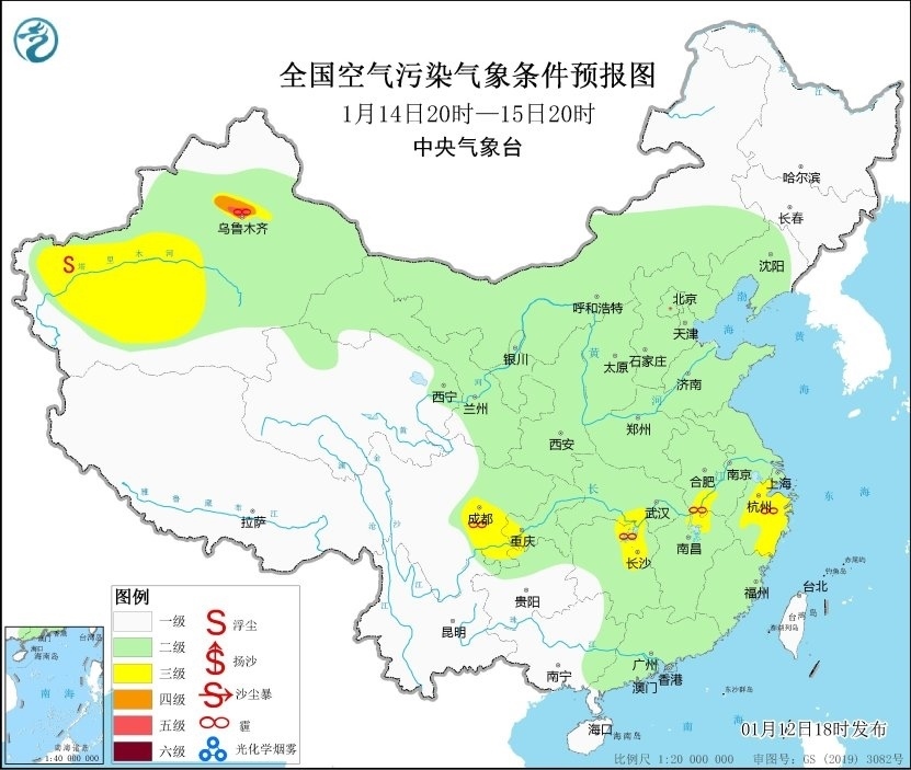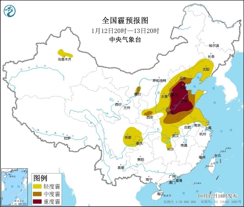 12日夜間至13日,華北中南部、黃淮、江淮、江漢、四川盆地等地大氣擴(kuò)散條件較差,有輕至中度霾,其中天津、河北南部、山東西部、河南中北部等地有重度霾。14日白天起,受冷空氣影響,上述地區(qū)霾天氣自北向南逐漸減弱消散。