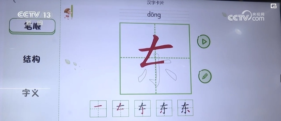 從一條小河到漢字“水”,充滿趣味性的動畫演示了古人是如何從自然界獲得靈感創(chuàng)造出文字的。在智慧教學平臺中,數(shù)字化教材不再是簡單地將紙質(zhì)書上的知識點平移到網(wǎng)絡上,而是通過模式創(chuàng)新、技術(shù)創(chuàng)新,來滿足廣大師生的應用需求。