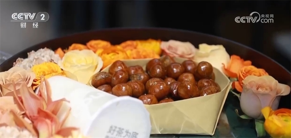 一些商家也是緊跟潮流,順勢(shì)推出“入冬四件套”禮盒。這家花店把鮮花、奶茶、糖葫蘆、糖炒栗子組合起來(lái)售賣,受到許多消費(fèi)者的歡迎。?