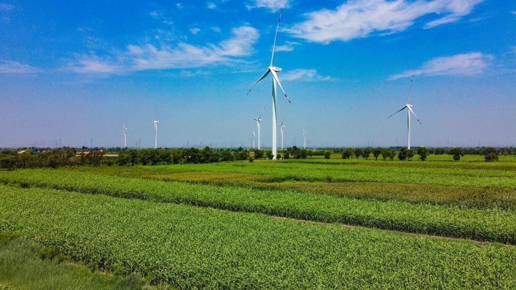 走進小王莊鎮(zhèn)李官莊村,連片的農(nóng)田之間,最顯眼的是一臺臺高聳入云的風力發(fā)電機,如同一只只白鳥展開巨大的翅膀,葉片隨風緩緩轉動。