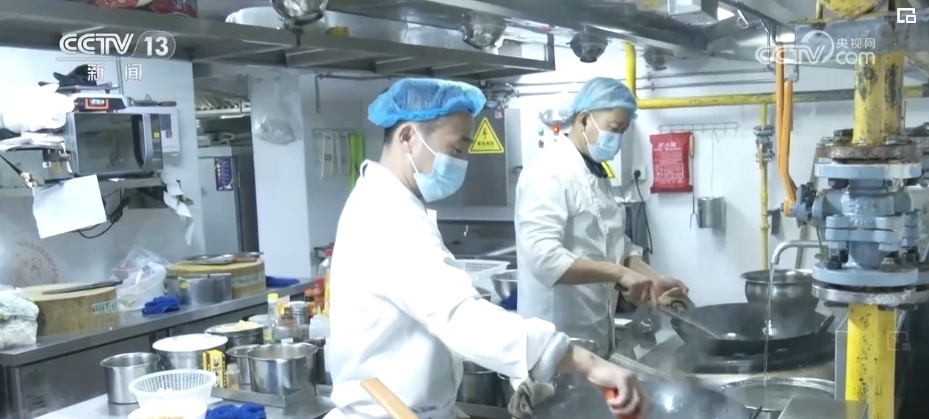 中午不到11時(shí),街道的助老餐廳忙碌起來(lái)。工作人員一邊忙著炒菜,一邊還要打包為不方便出門(mén)的老人送外賣(mài)。