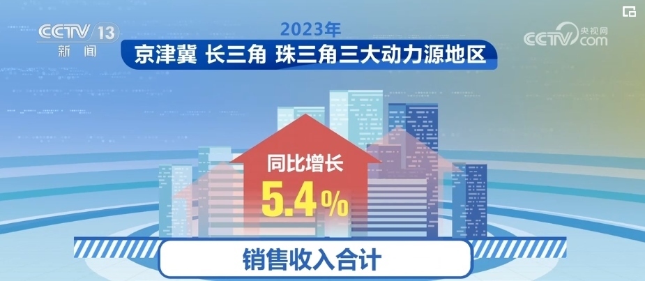 2023年,京津冀、長三角、珠三角三大動力源地區(qū)經(jīng)濟(jì)總體呈現(xiàn)較快發(fā)展態(tài)勢,銷售收入合計同比增長5.4%,占全國比重提高至54.1%,較2022年提高0.3個百分點,帶動作用持續(xù)增強(qiáng)。