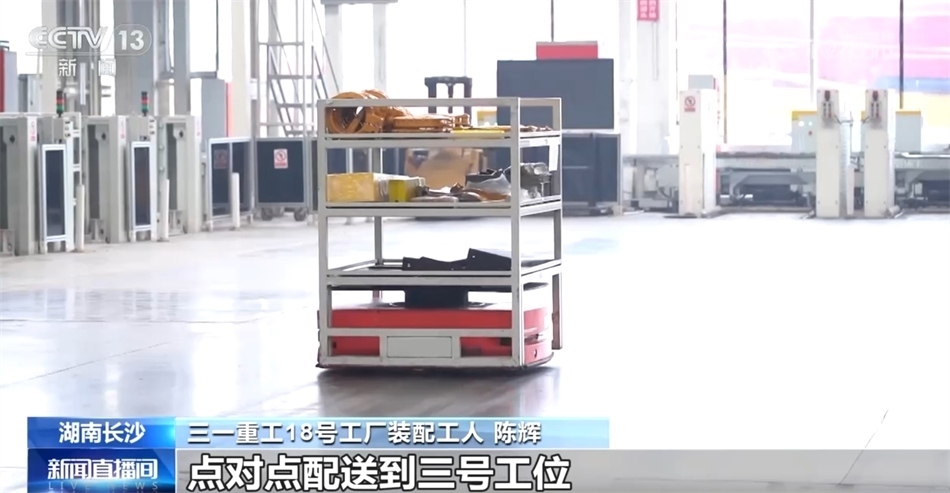 三一重工18號工廠裝配工人 陳輝:對于我們一個組裝工人來說,最麻煩的事莫過于找料和取料。我們過去都是自己找、自己拿,現(xiàn)在我們都是通過AGV小車點(diǎn)對點(diǎn)配送到三號工位。