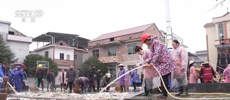 日前,在江西吉安永新縣高市鄉(xiāng)塘內(nèi)村,一場分魚活動(dòng)正在舉行。村里的男女老少齊上陣,將剛剛打撈上來的魚鋪滿廣場,按照種類和大小分好,一起共享收獲。
