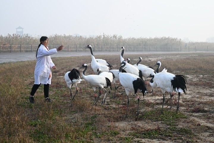 冬日清晨,遼闊的黃海濕地被成群丹頂鶴的高亢鳴叫喚醒。這里是“東亞-澳大利西亞”遷飛通道上數(shù)百萬候鳥的“加油站”,每年有約400至600只野生丹頂鶴在此越冬。不久前美國加州州長紐森到訪時(shí),一只陪同“參觀”的丹頂鶴意外走紅,以優(yōu)雅姿態(tài)為美麗江蘇代言。