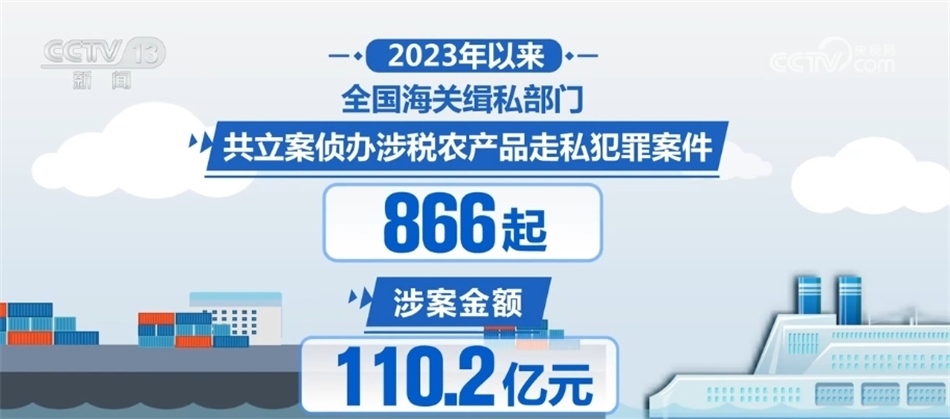 針對農(nóng)產(chǎn)品走私問題,海關(guān)緝私部門加大打擊凍品、煙草、水果、食糖、糧食等農(nóng)產(chǎn)品走私力度,推動強化對運輸、倉儲、銷售環(huán)節(jié)的清查整治。2023年以來,共立案偵辦涉稅農(nóng)產(chǎn)品走私犯罪案件866起,涉案金額110.2億元。